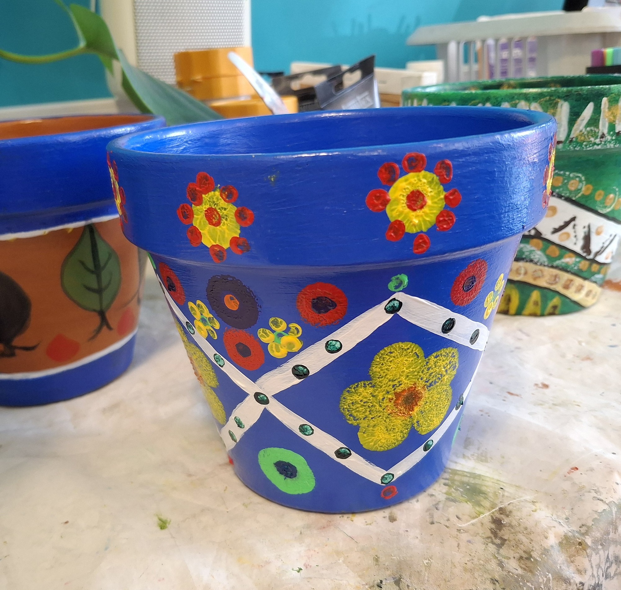 Coil pots with ‘air-drying’ clay - Painting on a round pot